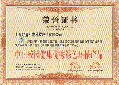 2018年1月,上海數造機電科技股份有限公司研發生產的3D打印機和三維掃描儀在全國校園健康優秀綠色環保產品調研推廣活動中,被入選為《中國校園健康優秀綠色環保產品》。